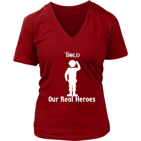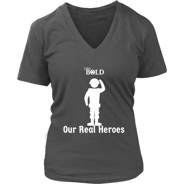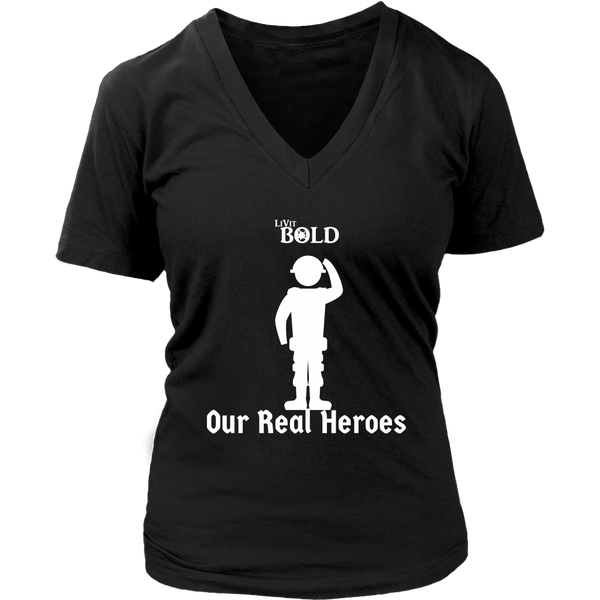 LiVit BOLD District Women's V-Neck Shirt - Our Real Heroes - Army Style