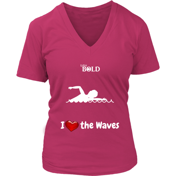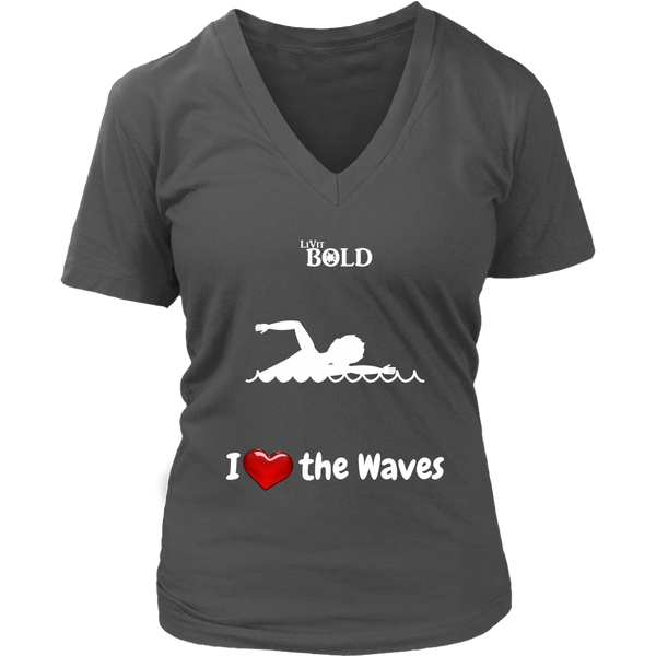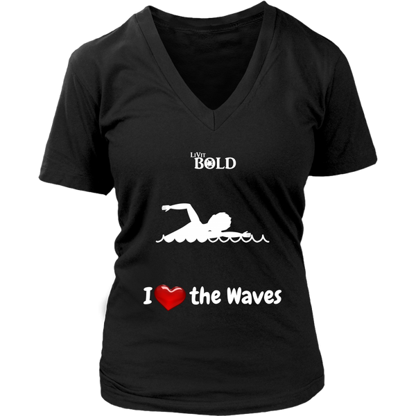 LiVit BOLD District Women's V-Neck Shirt - I Heart the Waves - Swimming